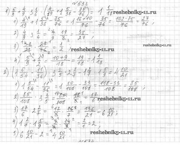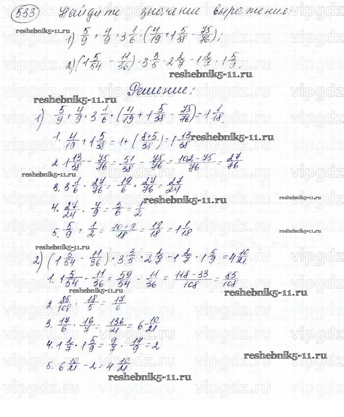 Готовая домашняя работа с ответами по Математике за 6 класс Мерзляк, Полонский, Якир Учебник Алгоритм успеха Вентана-граф 2016 ФГОС - Глава 2. Обыкновенные дроби (упражнения) 533