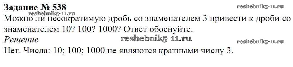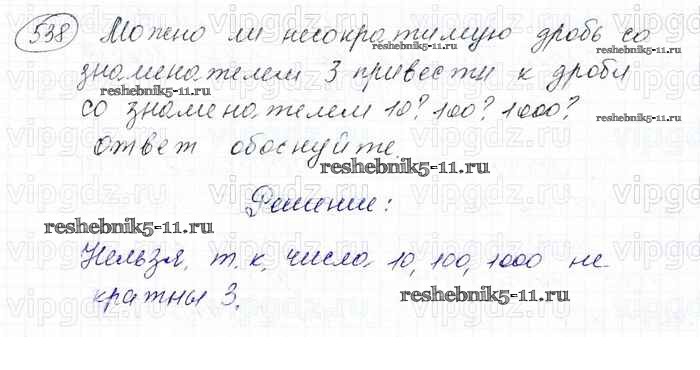 Готовая домашняя работа с ответами по Математике за 6 класс Мерзляк, Полонский, Якир Учебник Алгоритм успеха Вентана-граф 2016 ФГОС - Глава 2. Обыкновенные дроби (упражнения) 538
