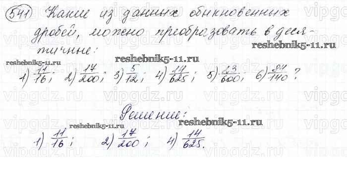 Готовая домашняя работа с ответами по Математике за 6 класс Мерзляк, Полонский, Якир Учебник Алгоритм успеха Вентана-граф 2016 ФГОС - Глава 2. Обыкновенные дроби (упражнения) 541