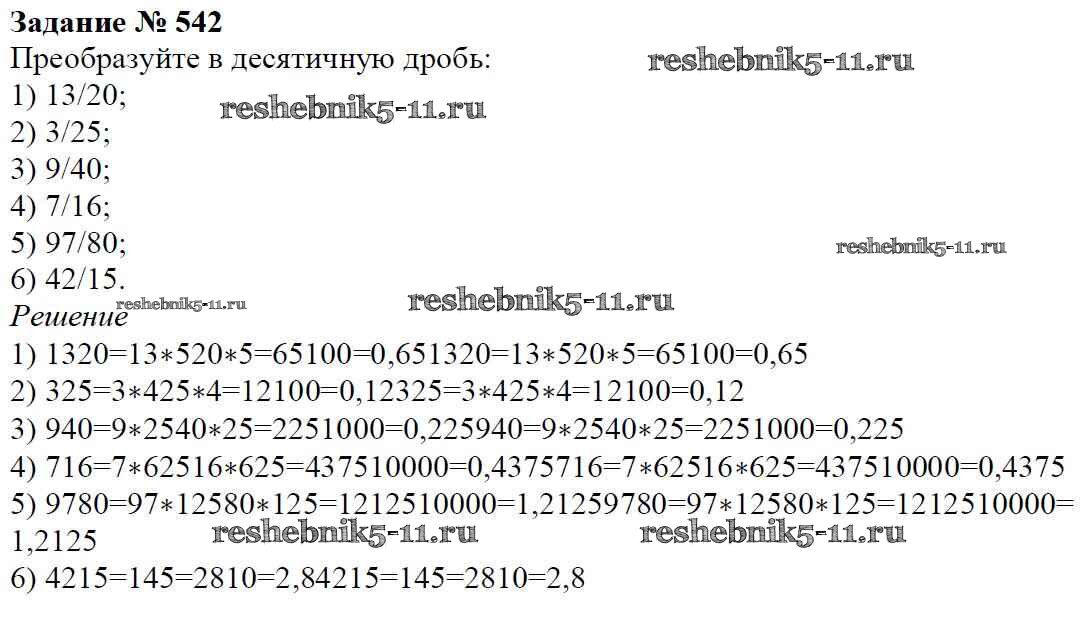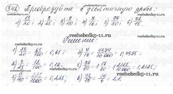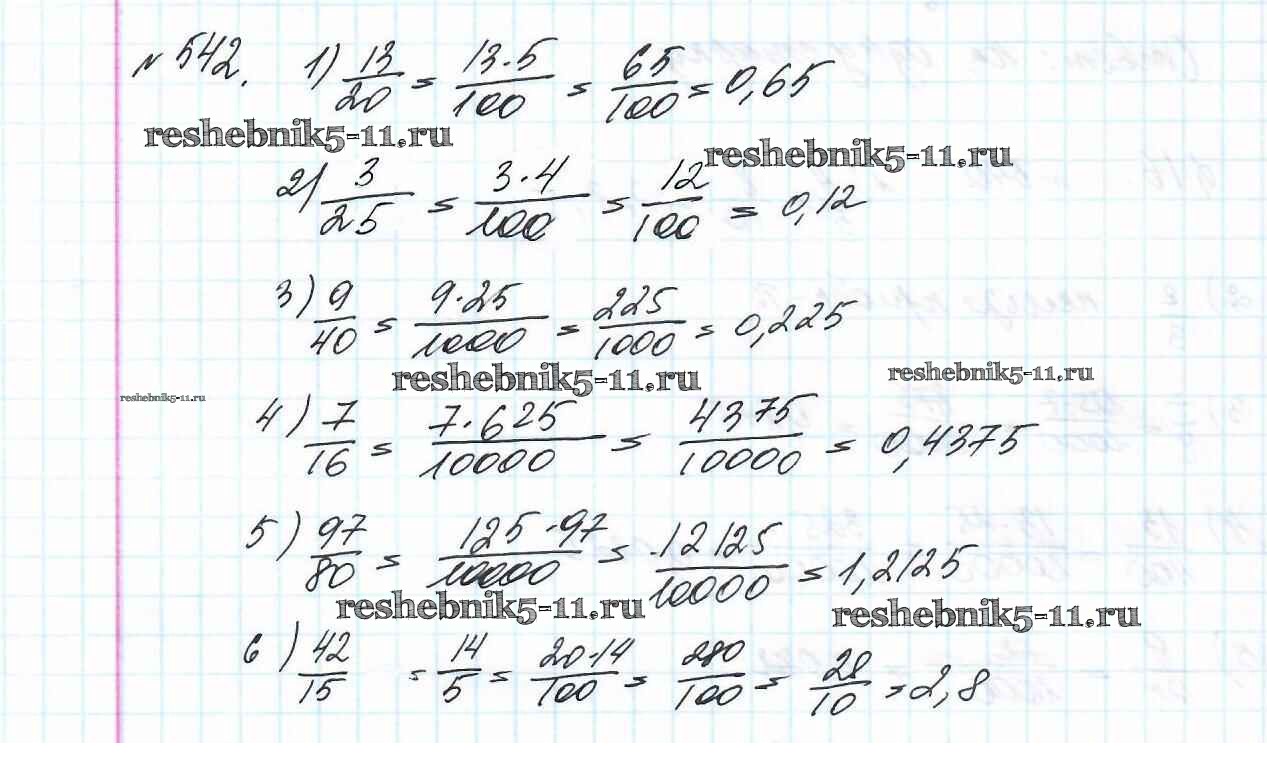 Готовая домашняя работа с ответами по Математике за 6 класс Мерзляк, Полонский, Якир Учебник Алгоритм успеха Вентана-граф 2016 ФГОС - Глава 2. Обыкновенные дроби (упражнения) 542