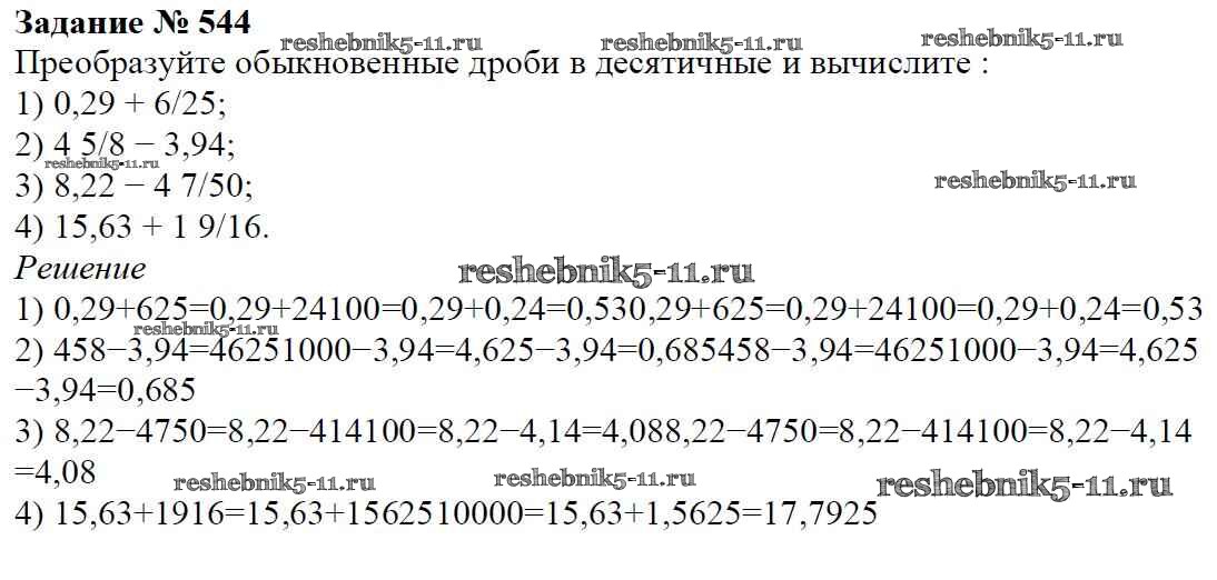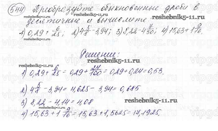 Готовая домашняя работа с ответами по Математике за 6 класс Мерзляк, Полонский, Якир Учебник Алгоритм успеха Вентана-граф 2016 ФГОС - Глава 2. Обыкновенные дроби (упражнения) 544