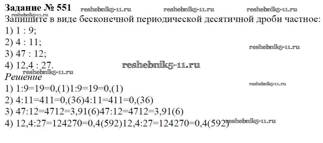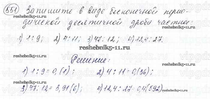 Готовая домашняя работа с ответами по Математике за 6 класс Мерзляк, Полонский, Якир Учебник Алгоритм успеха Вентана-граф 2016 ФГОС - Глава 2. Обыкновенные дроби (упражнения) 551