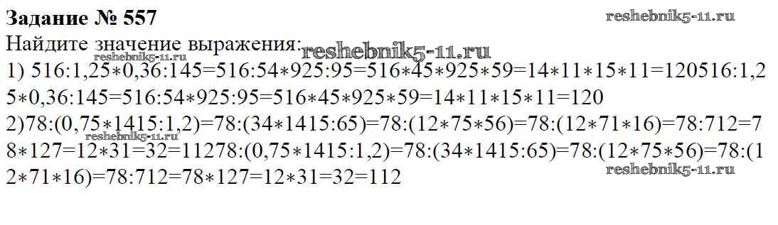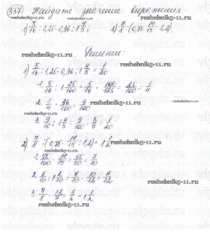 Готовая домашняя работа с ответами по Математике за 6 класс Мерзляк, Полонский, Якир Учебник Алгоритм успеха Вентана-граф 2016 ФГОС - Глава 2. Обыкновенные дроби (упражнения) 557