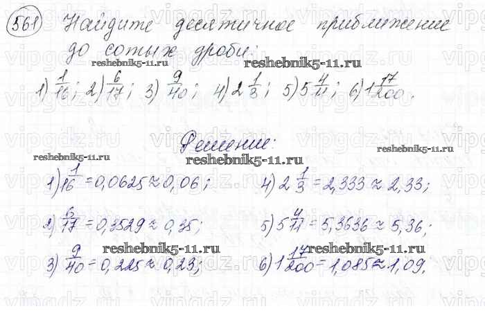 Готовая домашняя работа с ответами по Математике за 6 класс Мерзляк, Полонский, Якир Учебник Алгоритм успеха Вентана-граф 2016 ФГОС - Глава 2. Обыкновенные дроби (упражнения) 561