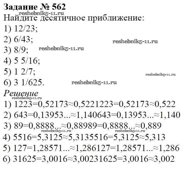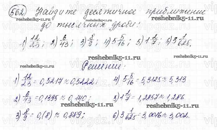 Готовая домашняя работа с ответами по Математике за 6 класс Мерзляк, Полонский, Якир Учебник Алгоритм успеха Вентана-граф 2016 ФГОС - Глава 2. Обыкновенные дроби (упражнения) 562