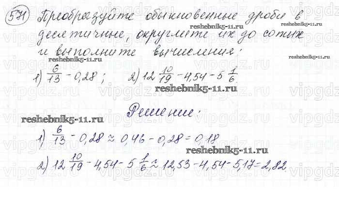 Готовая домашняя работа с ответами по Математике за 6 класс Мерзляк, Полонский, Якир Учебник Алгоритм успеха Вентана-граф 2016 ФГОС - Глава 2. Обыкновенные дроби (упражнения) 571