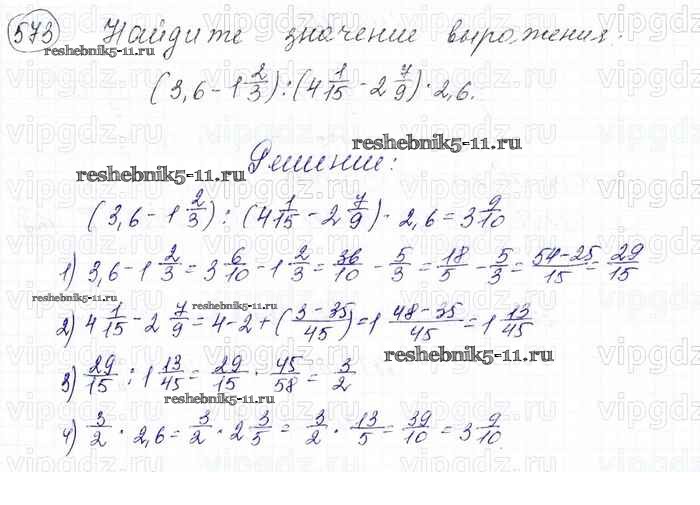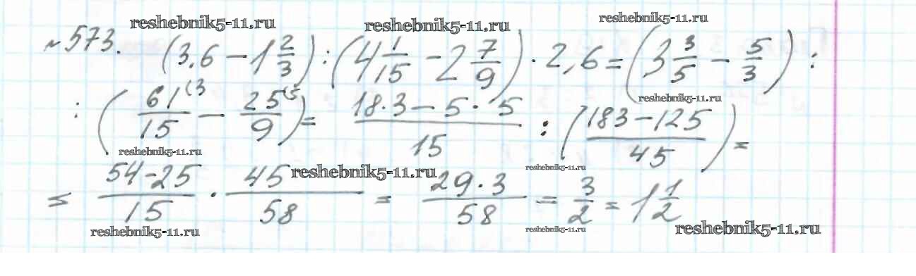 Готовая домашняя работа с ответами по Математике за 6 класс Мерзляк, Полонский, Якир Учебник Алгоритм успеха Вентана-граф 2016 ФГОС - Глава 2. Обыкновенные дроби (упражнения) 573