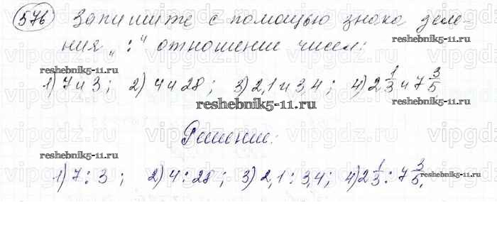 Готовая домашняя работа с ответами по Математике за 6 класс Мерзляк, Полонский, Якир Учебник Алгоритм успеха Вентана-граф 2016 ФГОС - Глава 3. Отношения и пропорции (упражнения) 576