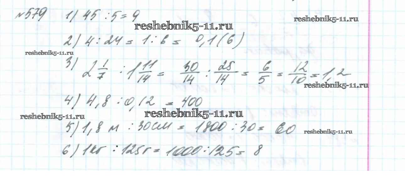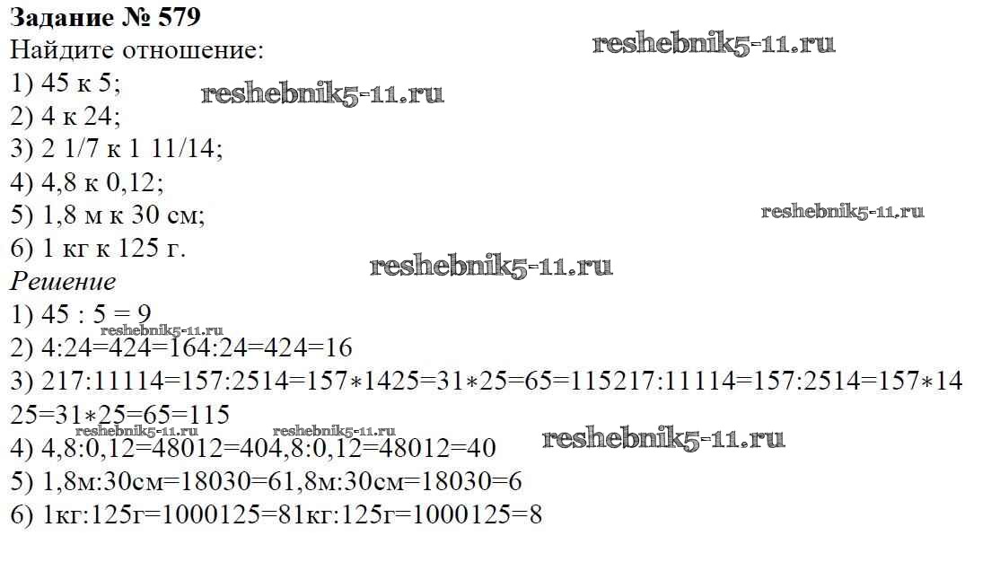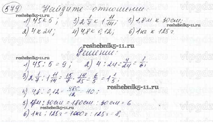 Готовая домашняя работа с ответами по Математике за 6 класс Мерзляк, Полонский, Якир Учебник Алгоритм успеха Вентана-граф 2016 ФГОС - Глава 3. Отношения и пропорции (упражнения) 579