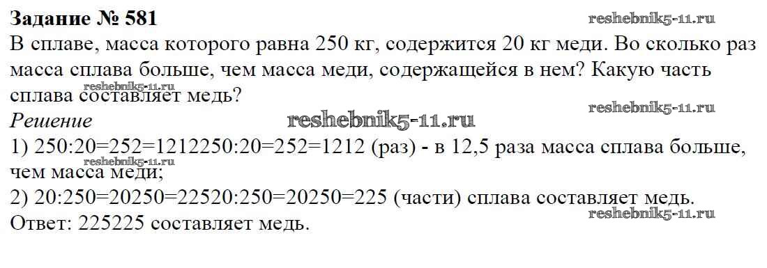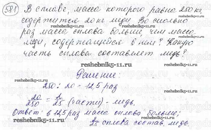 Готовая домашняя работа с ответами по Математике за 6 класс Мерзляк, Полонский, Якир Учебник Алгоритм успеха Вентана-граф 2016 ФГОС - Глава 3. Отношения и пропорции (упражнения) 581