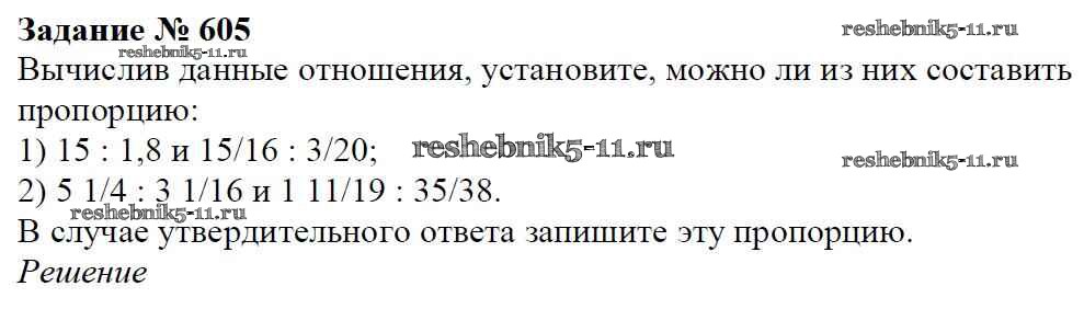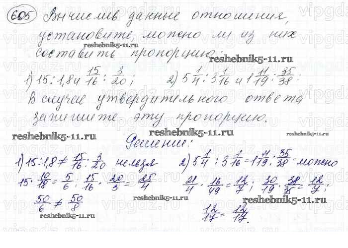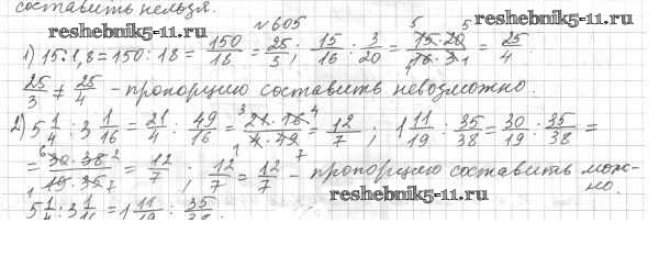 Готовая домашняя работа с ответами по Математике за 6 класс Мерзляк, Полонский, Якир Учебник Алгоритм успеха Вентана-граф 2016 ФГОС - Глава 3. Отношения и пропорции (упражнения) 605