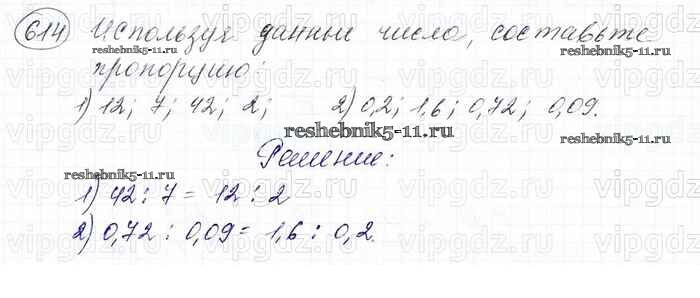 Готовая домашняя работа с ответами по Математике за 6 класс Мерзляк, Полонский, Якир Учебник Алгоритм успеха Вентана-граф 2016 ФГОС - Глава 3. Отношения и пропорции (упражнения) 614