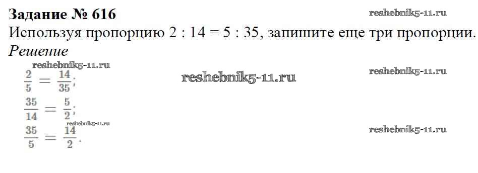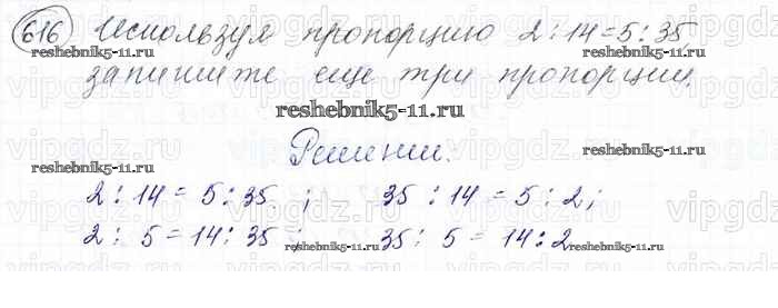 Готовая домашняя работа с ответами по Математике за 6 класс Мерзляк, Полонский, Якир Учебник Алгоритм успеха Вентана-граф 2016 ФГОС - Глава 3. Отношения и пропорции (упражнения) 616