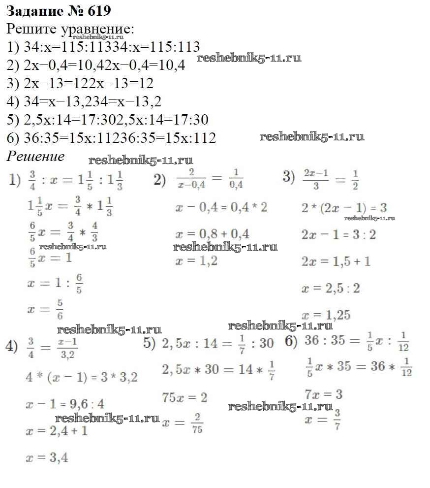 Готовая домашняя работа с ответами по Математике за 6 класс Мерзляк, Полонский, Якир Учебник Алгоритм успеха Вентана-граф 2016 ФГОС - Глава 3. Отношения и пропорции (упражнения) 619