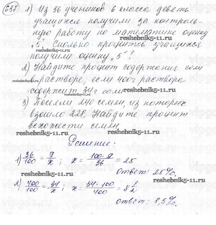 Готовая домашняя работа с ответами по Математике за 6 класс Мерзляк, Полонский, Якир Учебник Алгоритм успеха Вентана-граф 2016 ФГОС - Глава 3. Отношения и пропорции (упражнения) 637