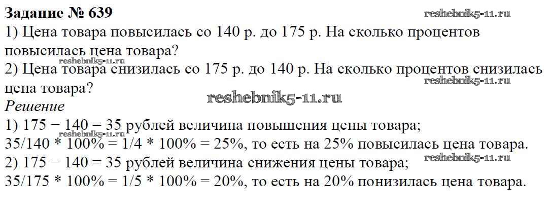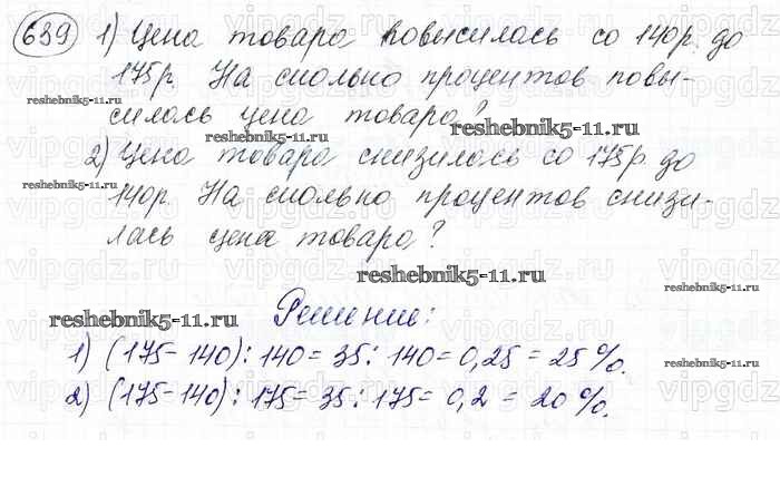 Готовая домашняя работа с ответами по Математике за 6 класс Мерзляк, Полонский, Якир Учебник Алгоритм успеха Вентана-граф 2016 ФГОС - Глава 3. Отношения и пропорции (упражнения) 639