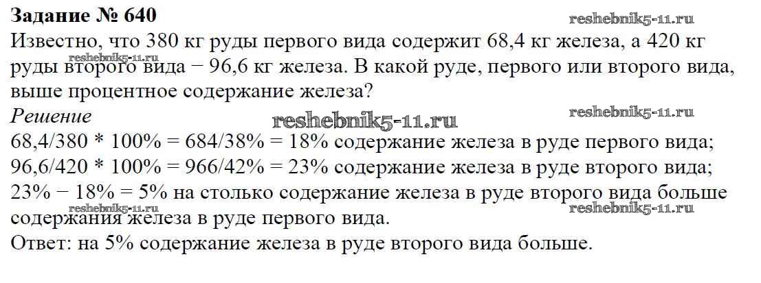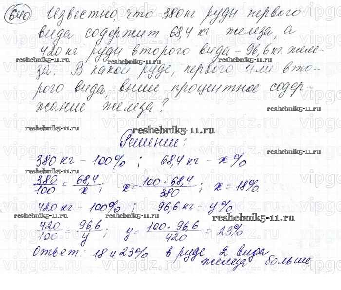 Готовая домашняя работа с ответами по Математике за 6 класс Мерзляк, Полонский, Якир Учебник Алгоритм успеха Вентана-граф 2016 ФГОС - Глава 3. Отношения и пропорции (упражнения) 640