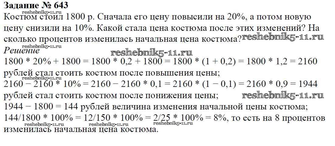Готовая домашняя работа с ответами по Математике за 6 класс Мерзляк, Полонский, Якир Учебник Алгоритм успеха Вентана-граф 2016 ФГОС - Глава 3. Отношения и пропорции (упражнения) 643