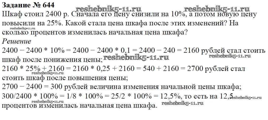 Готовая домашняя работа с ответами по Математике за 6 класс Мерзляк, Полонский, Якир Учебник Алгоритм успеха Вентана-граф 2016 ФГОС - Глава 3. Отношения и пропорции (упражнения) 644