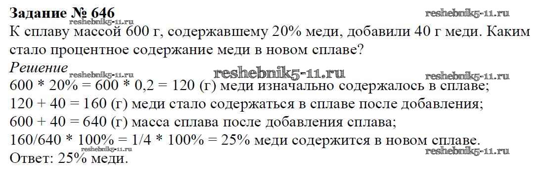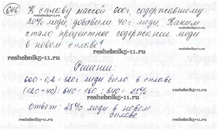 Готовая домашняя работа с ответами по Математике за 6 класс Мерзляк, Полонский, Якир Учебник Алгоритм успеха Вентана-граф 2016 ФГОС - Глава 3. Отношения и пропорции (упражнения) 646