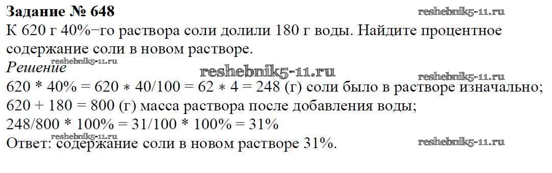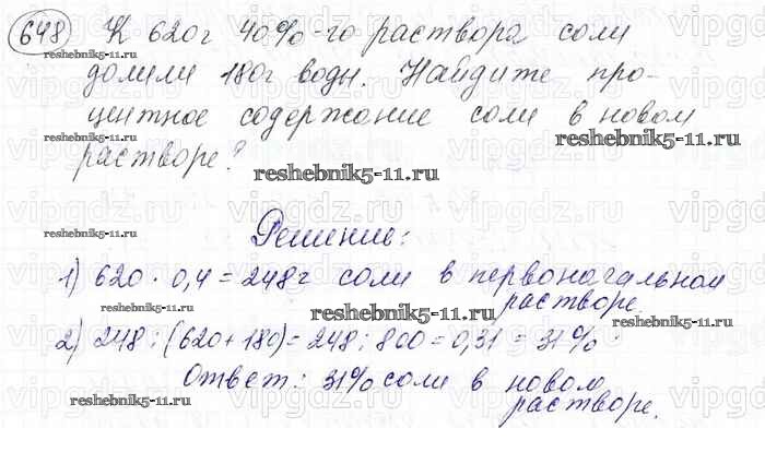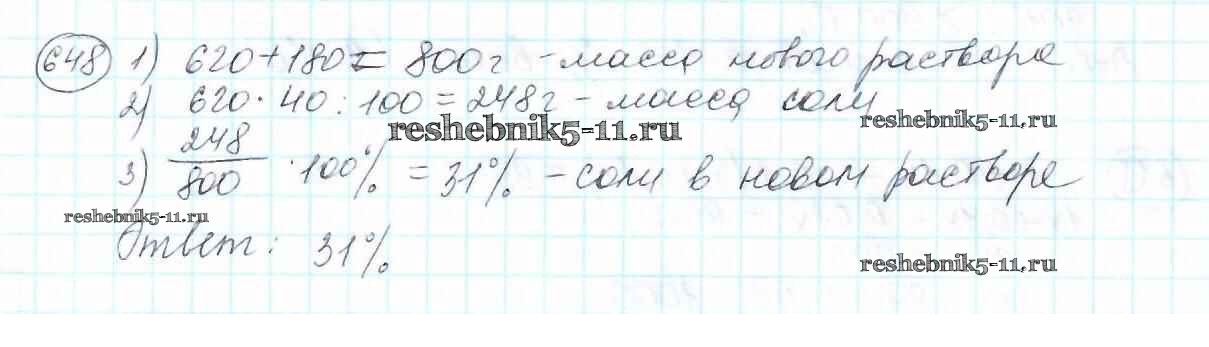 Готовая домашняя работа с ответами по Математике за 6 класс Мерзляк, Полонский, Якир Учебник Алгоритм успеха Вентана-граф 2016 ФГОС - Глава 3. Отношения и пропорции (упражнения) 648