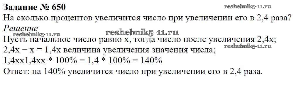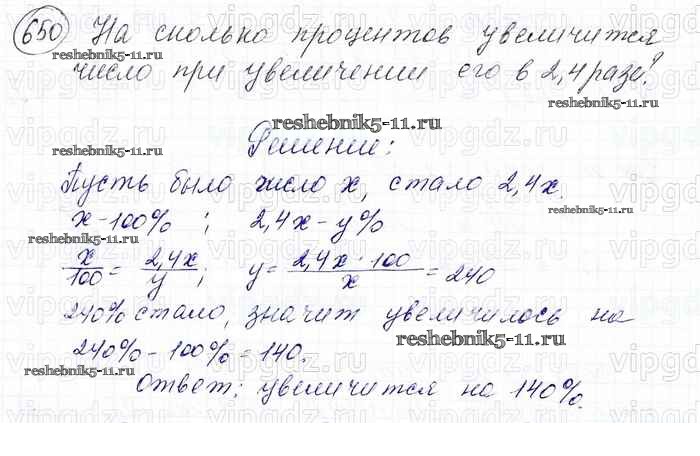 Готовая домашняя работа с ответами по Математике за 6 класс Мерзляк, Полонский, Якир Учебник Алгоритм успеха Вентана-граф 2016 ФГОС - Глава 3. Отношения и пропорции (упражнения) 650