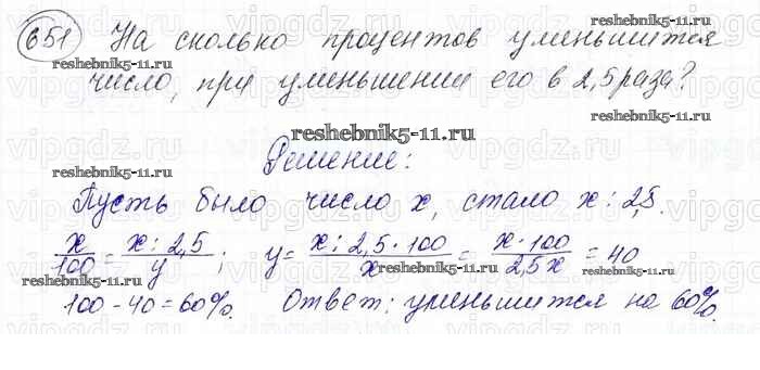 Готовая домашняя работа с ответами по Математике за 6 класс Мерзляк, Полонский, Якир Учебник Алгоритм успеха Вентана-граф 2016 ФГОС - Глава 3. Отношения и пропорции (упражнения) 651