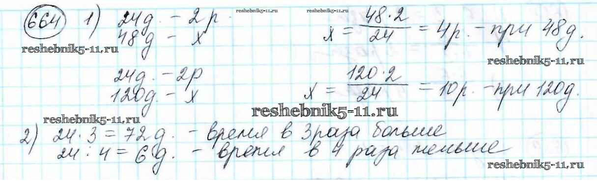 Готовая домашняя работа с ответами по Математике за 6 класс Мерзляк, Полонский, Якир Учебник Алгоритм успеха Вентана-граф 2016 ФГОС - Глава 3. Отношения и пропорции (упражнения) 664