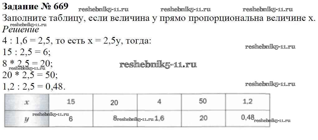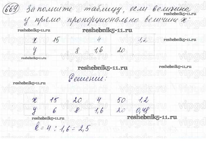 Готовая домашняя работа с ответами по Математике за 6 класс Мерзляк, Полонский, Якир Учебник Алгоритм успеха Вентана-граф 2016 ФГОС - Глава 3. Отношения и пропорции (упражнения) 669