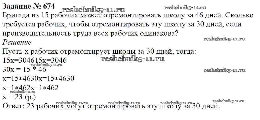 Готовая домашняя работа с ответами по Математике за 6 класс Мерзляк, Полонский, Якир Учебник Алгоритм успеха Вентана-граф 2016 ФГОС - Глава 3. Отношения и пропорции (упражнения) 674