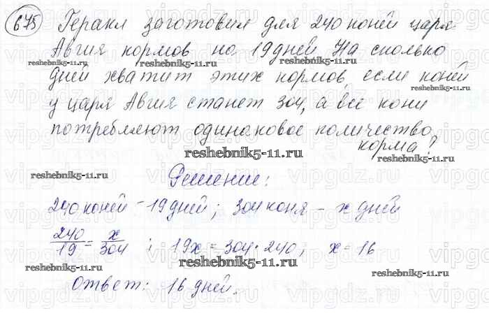 Готовая домашняя работа с ответами по Математике за 6 класс Мерзляк, Полонский, Якир Учебник Алгоритм успеха Вентана-граф 2016 ФГОС - Глава 3. Отношения и пропорции (упражнения) 675