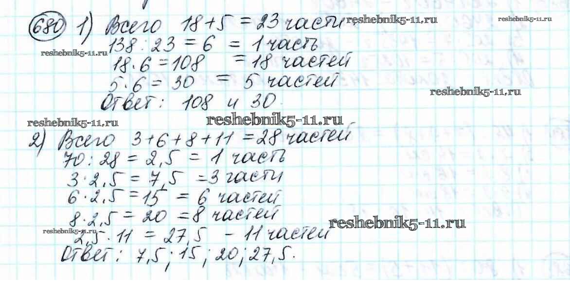 Готовая домашняя работа с ответами по Математике за 6 класс Мерзляк, Полонский, Якир Учебник Алгоритм успеха Вентана-граф 2016 ФГОС - Глава 3. Отношения и пропорции (упражнения) 680