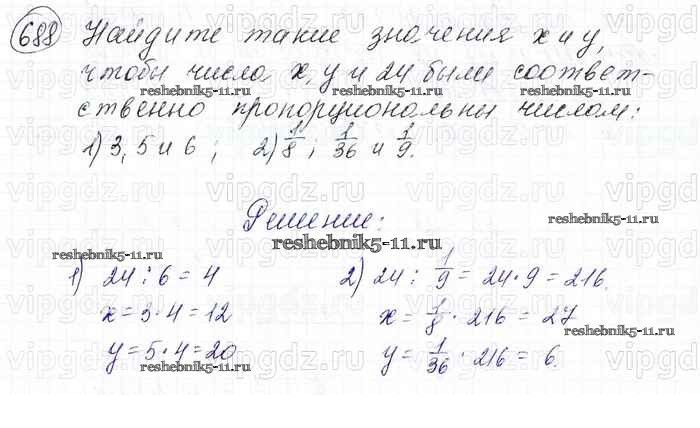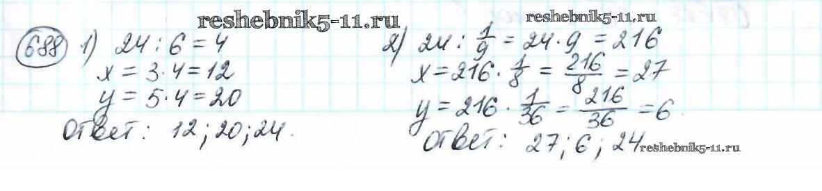 Готовая домашняя работа с ответами по Математике за 6 класс Мерзляк, Полонский, Якир Учебник Алгоритм успеха Вентана-граф 2016 ФГОС - Глава 3. Отношения и пропорции (упражнения) 688