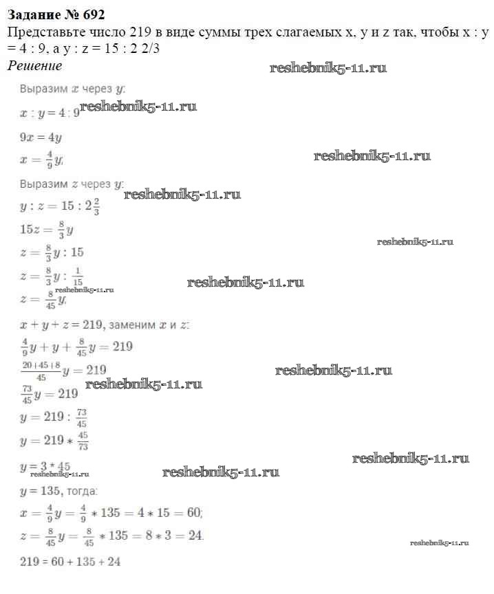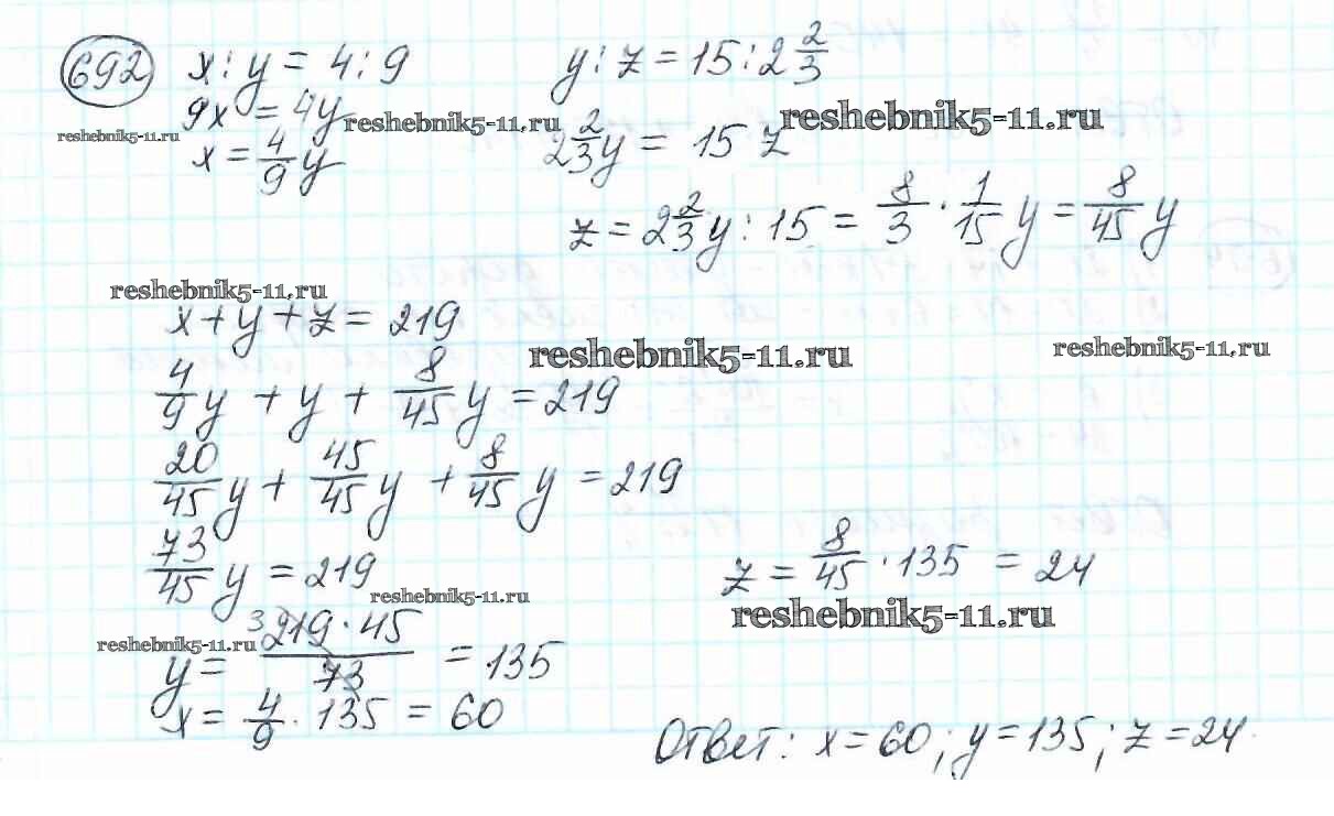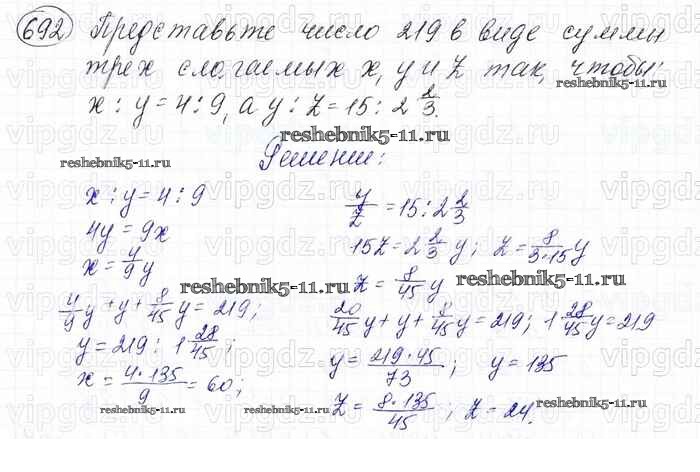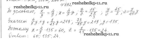 Готовая домашняя работа с ответами по Математике за 6 класс Мерзляк, Полонский, Якир Учебник Алгоритм успеха Вентана-граф 2016 ФГОС - Глава 3. Отношения и пропорции (упражнения) 692