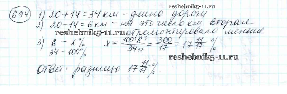 Готовая домашняя работа с ответами по Математике за 6 класс Мерзляк, Полонский, Якир Учебник Алгоритм успеха Вентана-граф 2016 ФГОС - Глава 3. Отношения и пропорции (упражнения) 694