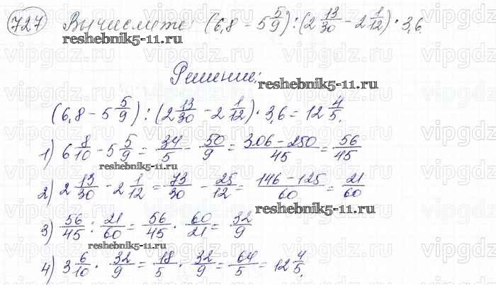 Готовая домашняя работа с ответами по Математике за 6 класс Мерзляк, Полонский, Якир Учебник Алгоритм успеха Вентана-граф 2016 ФГОС - Глава 3. Отношения и пропорции (упражнения) 727
