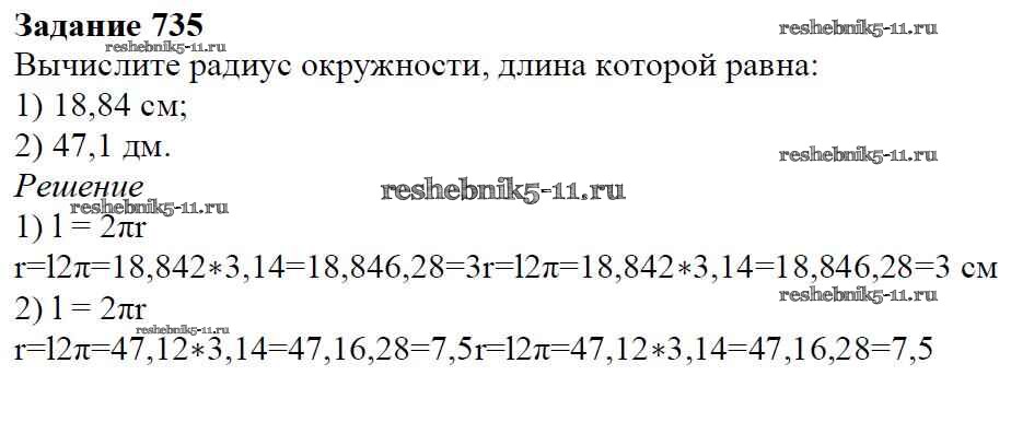 Готовая домашняя работа с ответами по Математике за 6 класс Мерзляк, Полонский, Якир Учебник Алгоритм успеха Вентана-граф 2016 ФГОС - Глава 3. Отношения и пропорции (упражнения) 735