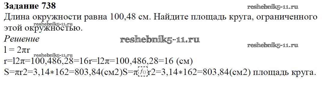 Готовая домашняя работа с ответами по Математике за 6 класс Мерзляк, Полонский, Якир Учебник Алгоритм успеха Вентана-граф 2016 ФГОС - Глава 3. Отношения и пропорции (упражнения) 738