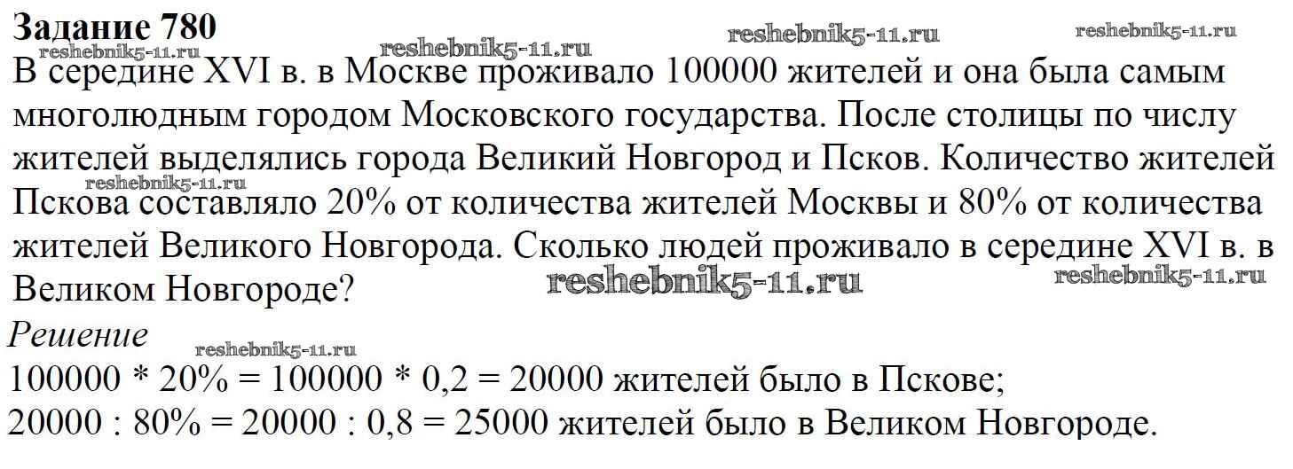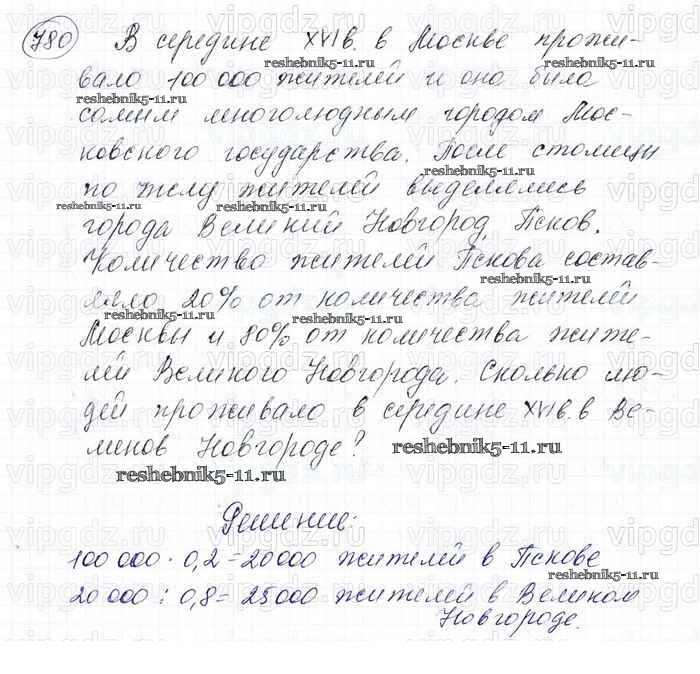 Готовая домашняя работа с ответами по Математике за 6 класс Мерзляк, Полонский, Якир Учебник Алгоритм успеха Вентана-граф 2016 ФГОС - Глава 3. Отношения и пропорции (упражнения) 780