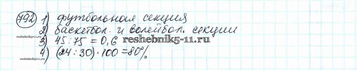 Готовая домашняя работа с ответами по Математике за 6 класс Мерзляк, Полонский, Якир Учебник Алгоритм успеха Вентана-граф 2016 ФГОС - Глава 3. Отношения и пропорции (упражнения) 792