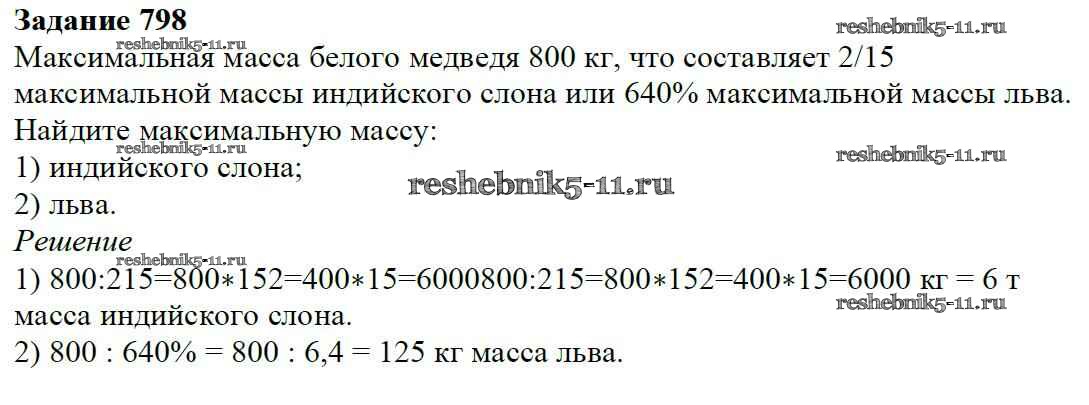 Готовая домашняя работа с ответами по Математике за 6 класс Мерзляк, Полонский, Якир Учебник Алгоритм успеха Вентана-граф 2016 ФГОС - Глава 3. Отношения и пропорции (упражнения) 798