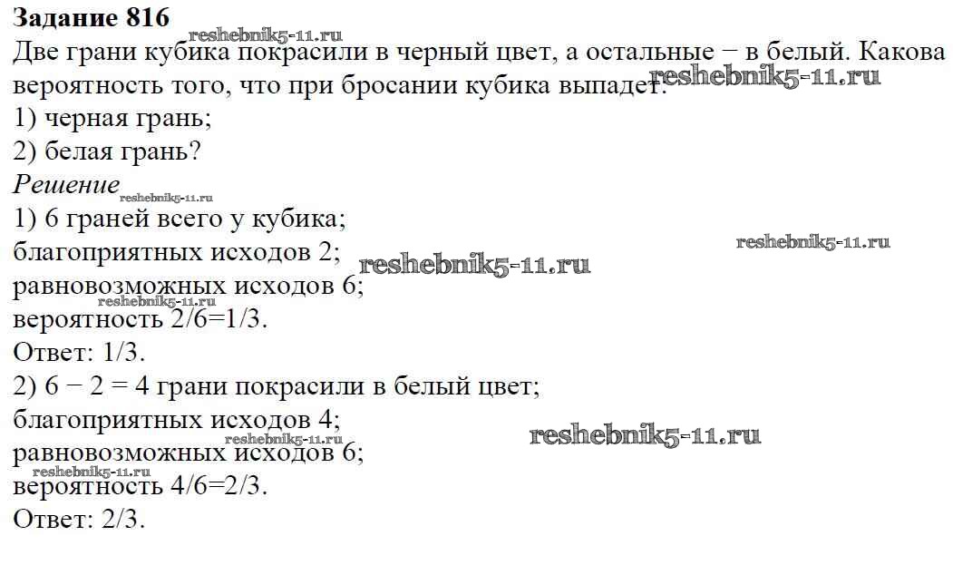 Готовая домашняя работа с ответами по Математике за 6 класс Мерзляк, Полонский, Якир Учебник Алгоритм успеха Вентана-граф 2016 ФГОС - Глава 3. Отношения и пропорции (упражнения) 816