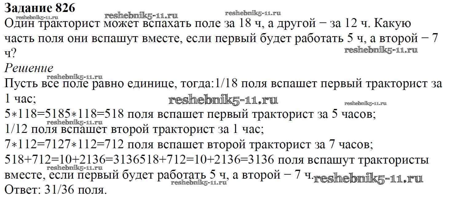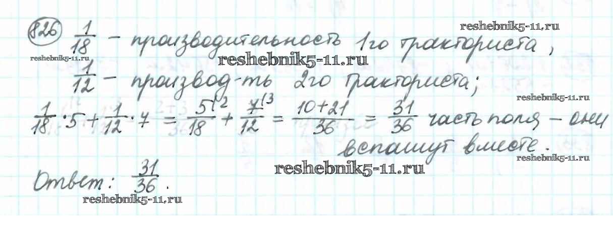 Готовая домашняя работа с ответами по Математике за 6 класс Мерзляк, Полонский, Якир Учебник Алгоритм успеха Вентана-граф 2016 ФГОС - Глава 3. Отношения и пропорции (упражнения) 826