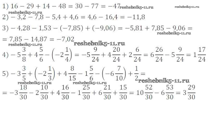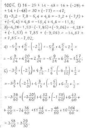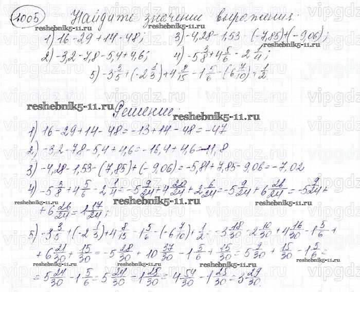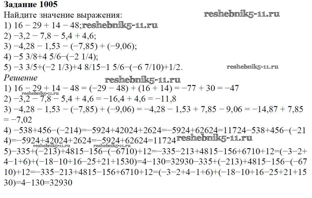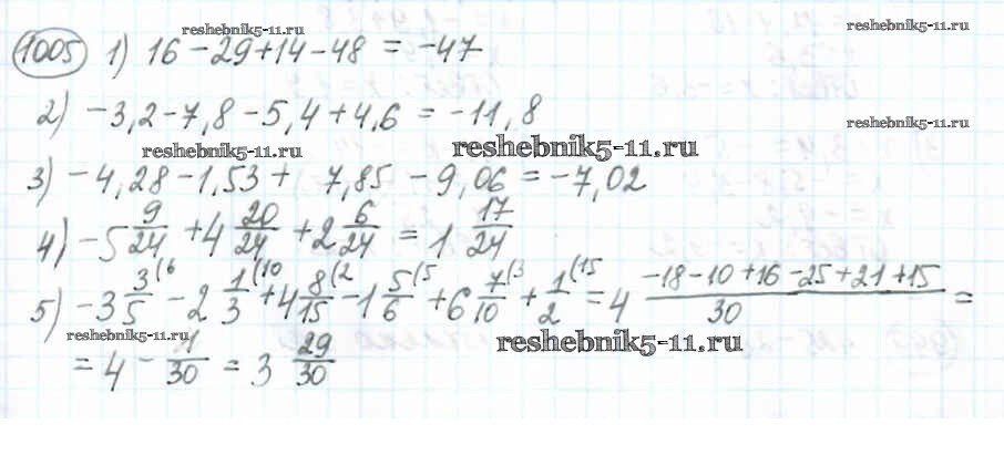 Готовая домашняя работа с ответами по Математике за 6 класс Мерзляк, Полонский, Якир Учебник Алгоритм успеха Вентана-граф 2016 ФГОС - Глава 4. Рациональные числа и действия над ними (упражнения) 1005
