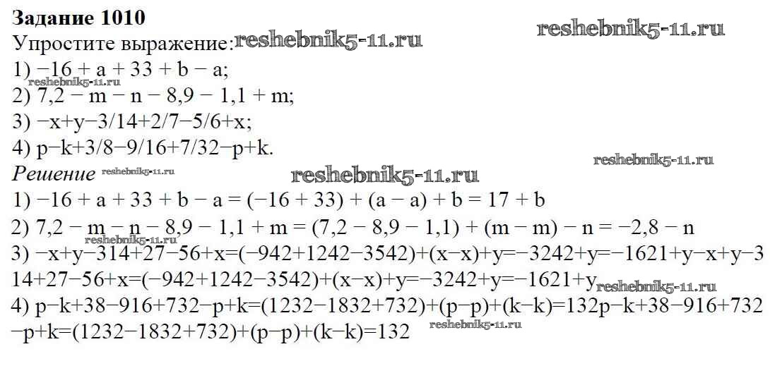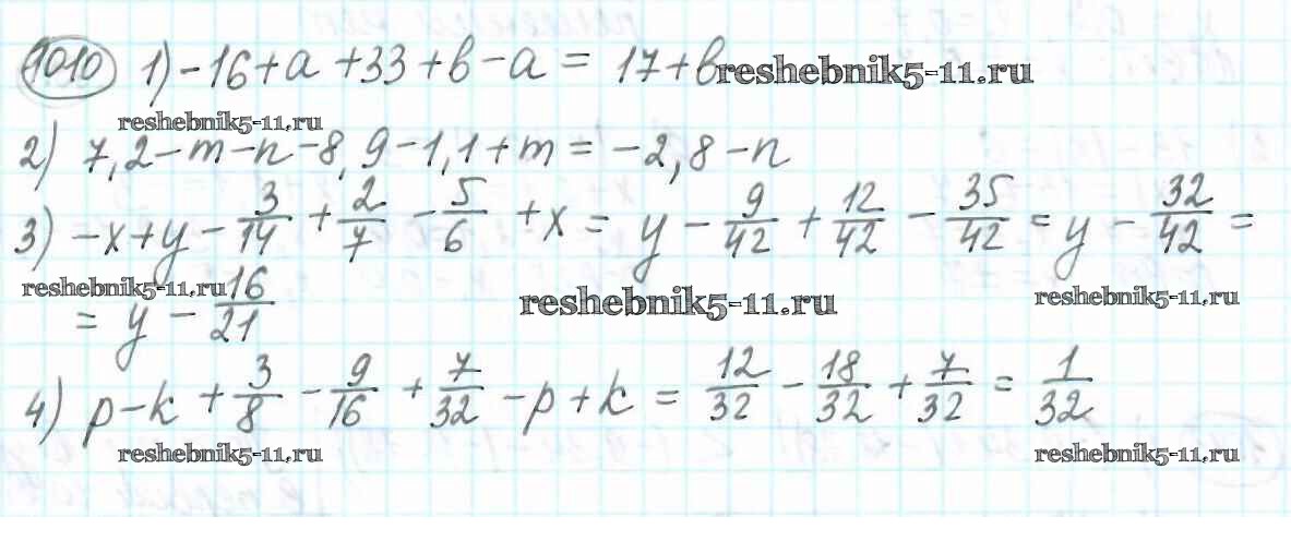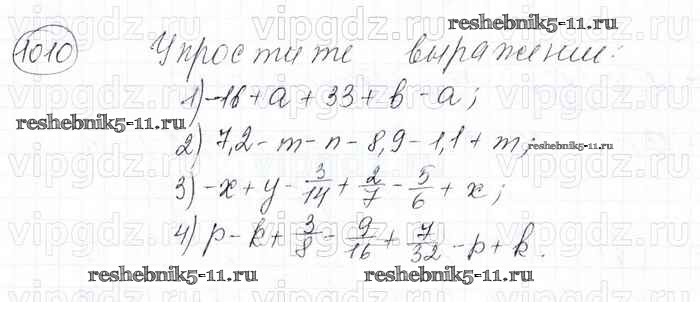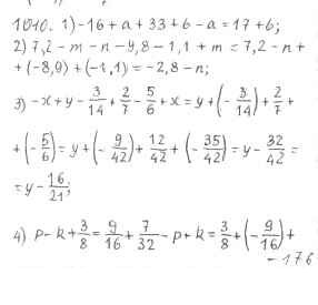 Готовая домашняя работа с ответами по Математике за 6 класс Мерзляк, Полонский, Якир Учебник Алгоритм успеха Вентана-граф 2016 ФГОС - Глава 4. Рациональные числа и действия над ними (упражнения) 1010