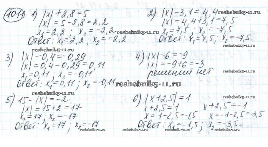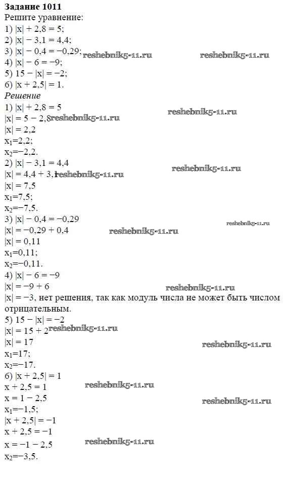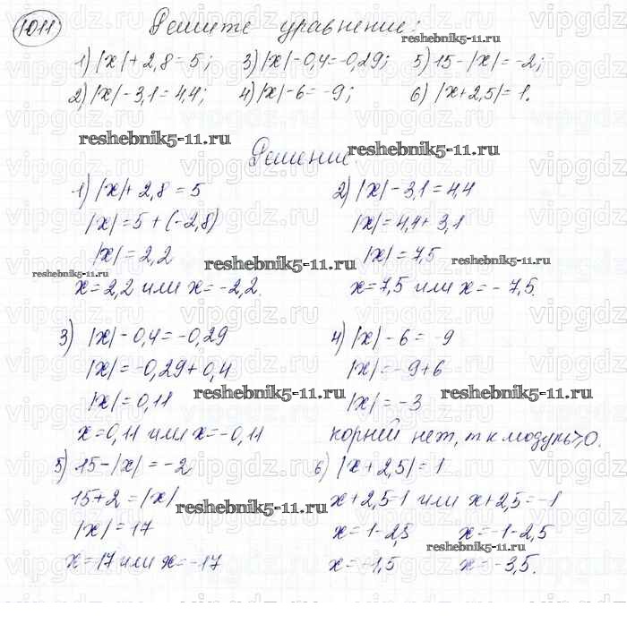 Готовая домашняя работа с ответами по Математике за 6 класс Мерзляк, Полонский, Якир Учебник Алгоритм успеха Вентана-граф 2016 ФГОС - Глава 4. Рациональные числа и действия над ними (упражнения) 1011