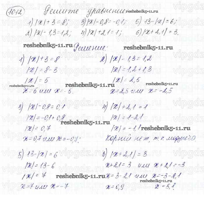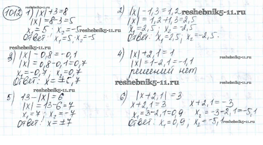 Готовая домашняя работа с ответами по Математике за 6 класс Мерзляк, Полонский, Якир Учебник Алгоритм успеха Вентана-граф 2016 ФГОС - Глава 4. Рациональные числа и действия над ними (упражнения) 1012