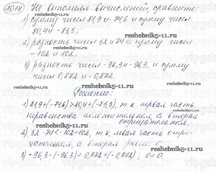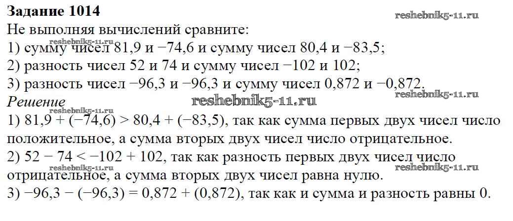 Готовая домашняя работа с ответами по Математике за 6 класс Мерзляк, Полонский, Якир Учебник Алгоритм успеха Вентана-граф 2016 ФГОС - Глава 4. Рациональные числа и действия над ними (упражнения) 1014