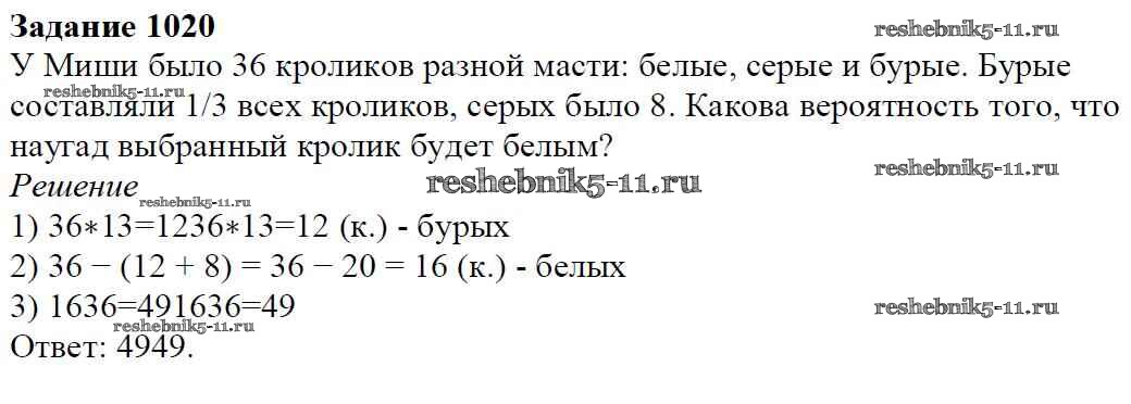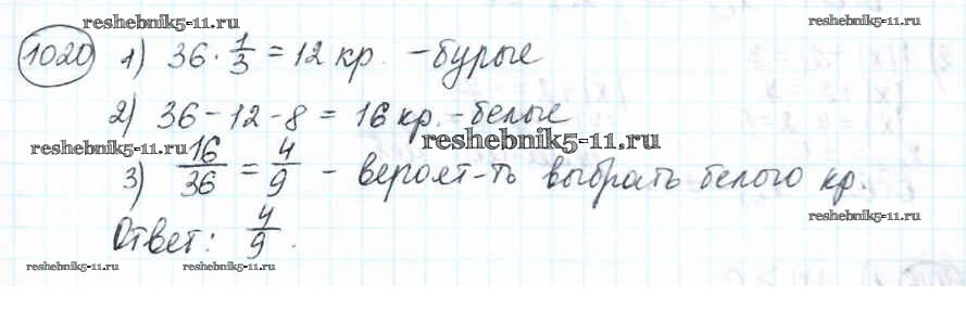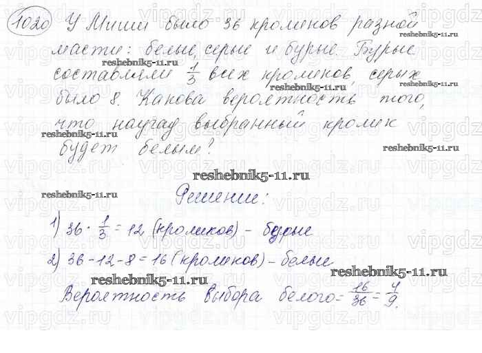 Готовая домашняя работа с ответами по Математике за 6 класс Мерзляк, Полонский, Якир Учебник Алгоритм успеха Вентана-граф 2016 ФГОС - Глава 4. Рациональные числа и действия над ними (упражнения) 1020