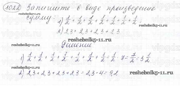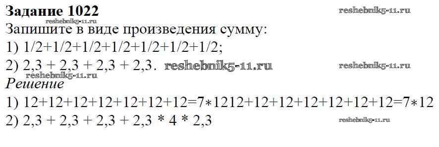 Готовая домашняя работа с ответами по Математике за 6 класс Мерзляк, Полонский, Якир Учебник Алгоритм успеха Вентана-граф 2016 ФГОС - Глава 4. Рациональные числа и действия над ними (упражнения) 1022
